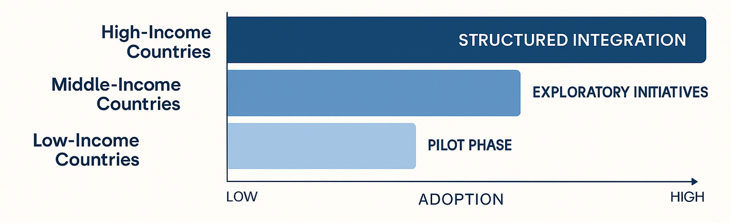 The adoption of digital therapeutics (DTx) for mental health shows considerable variation across regions, influenced by factors such as regulatory development, healthcare infrastructure, digital capacity, and reimbursement policies. High-income countries are moving toward structured integration into their healthcare systems, whereas many low- and middle-income countries (LMICs) remain in the early stages, often limited to exploratory initiatives or pilot programs².