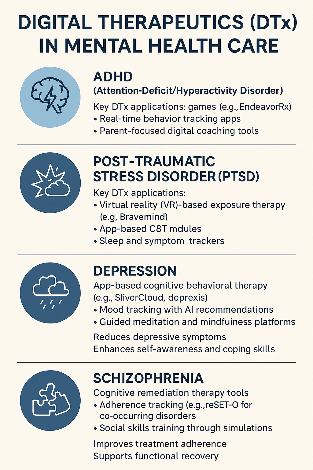 DTx have emerged as a transformative approach in addressing mental health challenges, offering evidence-based, technology-driven interventions. As mental health disorders become increasingly prevalent globally, traditional methods of treatment often fail to meet the growing demand due to limited accessibility, stigmatization, and resource constraints.